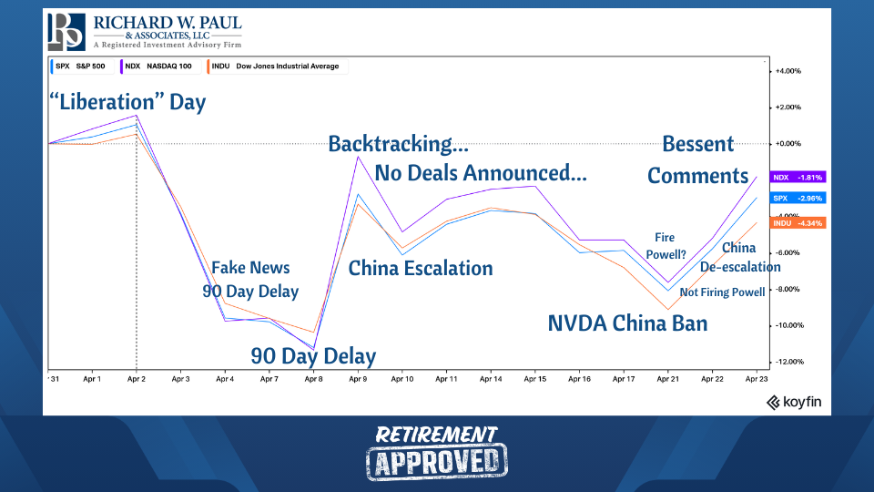 With headlines dominated by tariffs, inflation fears, and wild market swings, it’s easy to get caught up in the chaos. In this episode of Retirement Approved, Matt and Steve break down the ongoing tariff situation, how markets have reacted, and what it means for your financial future.