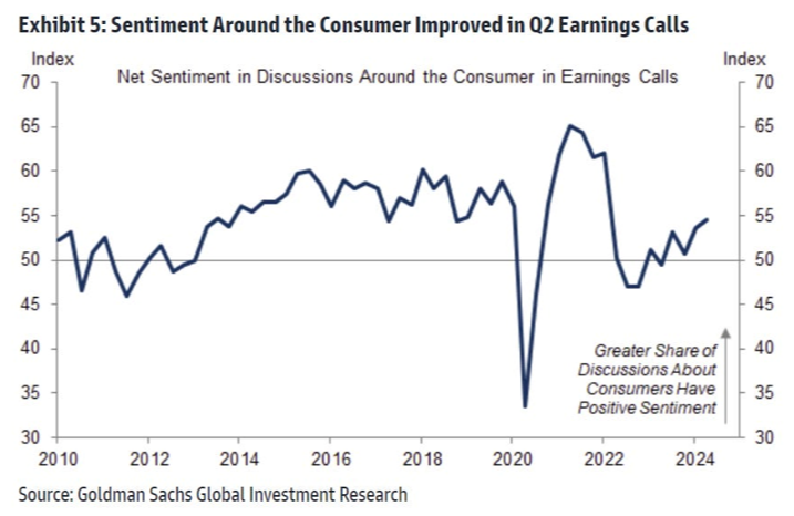 The bottom line is that the U.S. consumer, in aggregate, is spending, and little data suggests this will slow down materially anytime soon. But don’t just take my word for it. The final chart below shows that sentiment around the consumer from some of the largest retailers in the country remains quite positive.