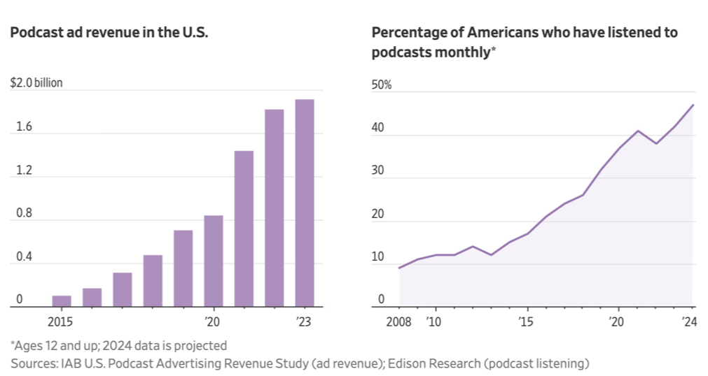 The charts below show how popular and profitable podcasting has become for the top shows.