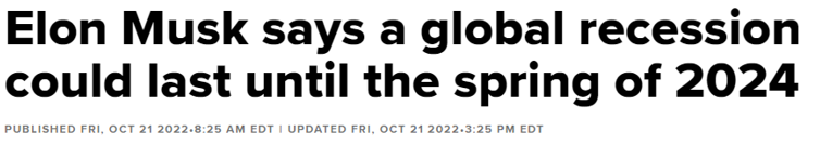 Now, we’re beyond the point when Musk expected the recession to end—and it never even began.