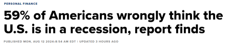 This rarity helps explain why so many have been predicting a recession for years—it feels overdue. And the problem is, these prognosticators are about to get very loud. The market is in a heightened state of emotion right now, evidenced by the VIX spike in early August due to the Yen carry trade unwinding. In addition, the next 6 months will bring us an election, an uninverting yield curve, potentially higher unemployment, and likely continued global turmoil. You will see CNBC discuss how 8 of the last 8 yield curve inversions have resulted in recessions within two years (we’re in month 20 right now). You will see them claim if their presidential candidate loses, we will surely see a recession. They’ll talk about things like the Sahm rule. Investor sentiment. Unemployment. And on and on...